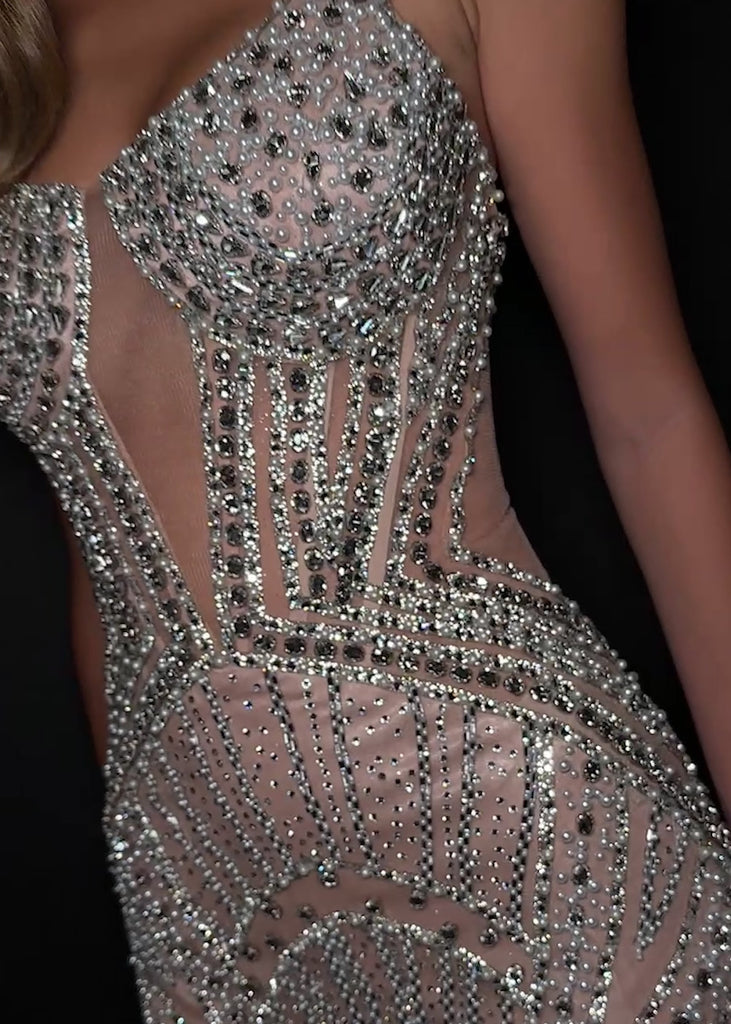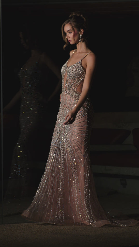 - Fully beaded, Illusion cutouts, Sweetheart neckline, Lace-up back, Spaghetti Straps
