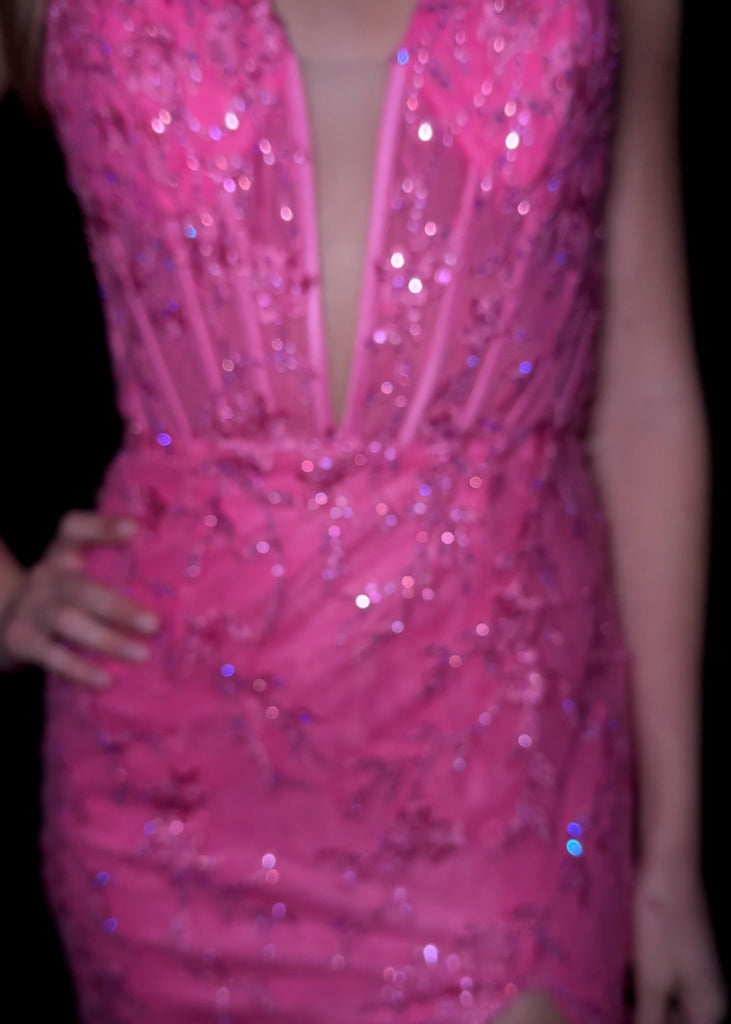 This striking lace applique gown features a deep V-neckline with illusion cutouts and a thigh-high slit for added drama. The fitted bodice laces up in the back, creating a flattering, adjustable fit that accentuates your curves. ASHLEYlauren Style 12156 is perfect for pageant, prom, or any red-carpet moment, this gown radiates confidence and glamour.